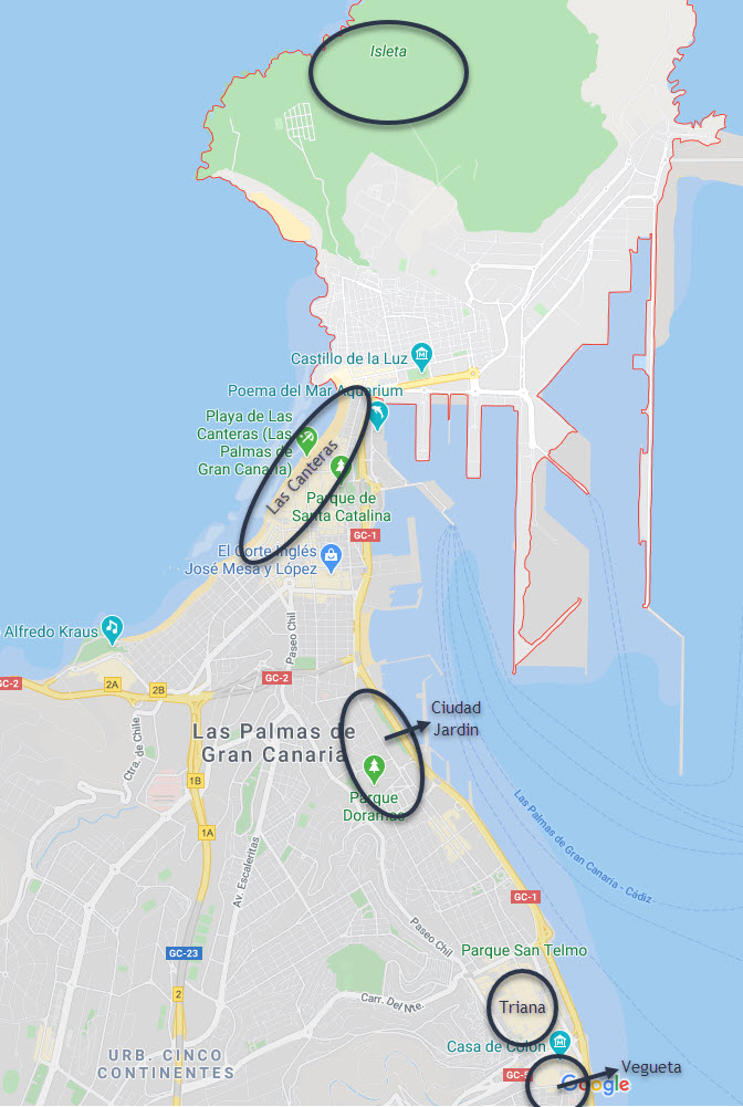 Las palmas where to stay area map